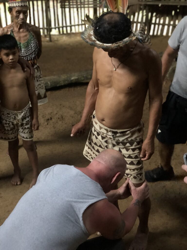 Because Walter and the tribe were largely believers already we didn’t preach to them, but we did make sure to pray for anyone with pain and injuries before we left.  An elderly man came up for prayer who had lost much of the sensation and mobility in his arms after carrying a heavy load through the jungle.  He fell and was injured and afterward he could no longer move or feel properly.  While from a medical perspective I suspect he had some level of nerve impingement in his upper back, the fact is that this negatively impacted his quality of life.  Until Jesus showed up, that is.  One of our team, Shawn, prayed for him and he regained all range of motion and sensation and all the pain in his body left!